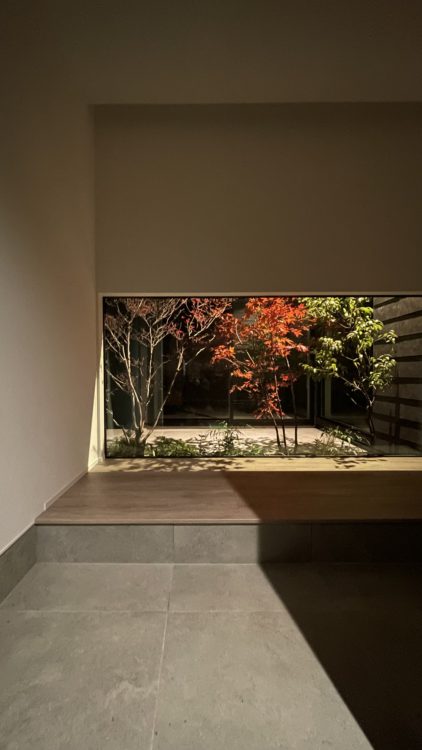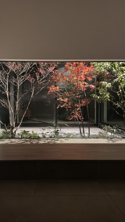 中庭を見ていただくと先ほどの地窓が見えますね。繋がりが生まれるようにという設計の意図があります。