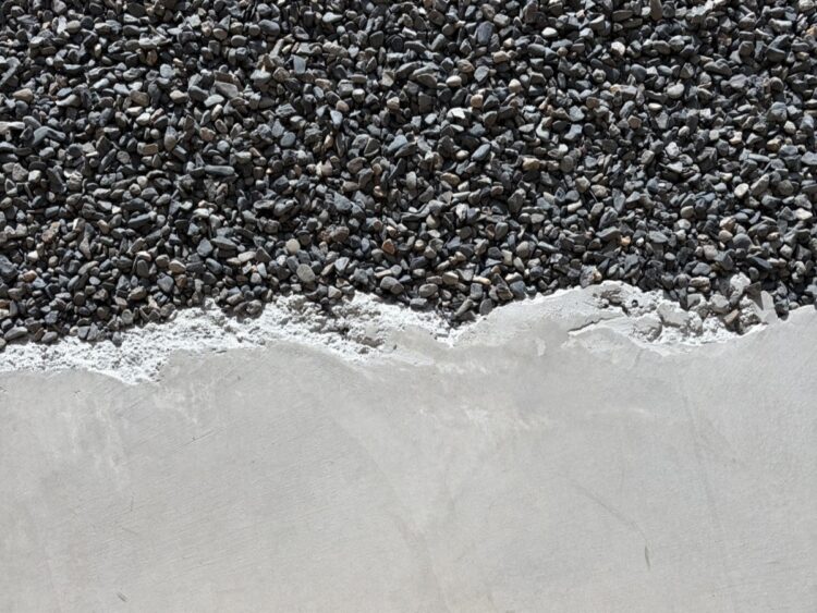 コンクリートと砂利が、波打つように曖昧に交わる様子。
